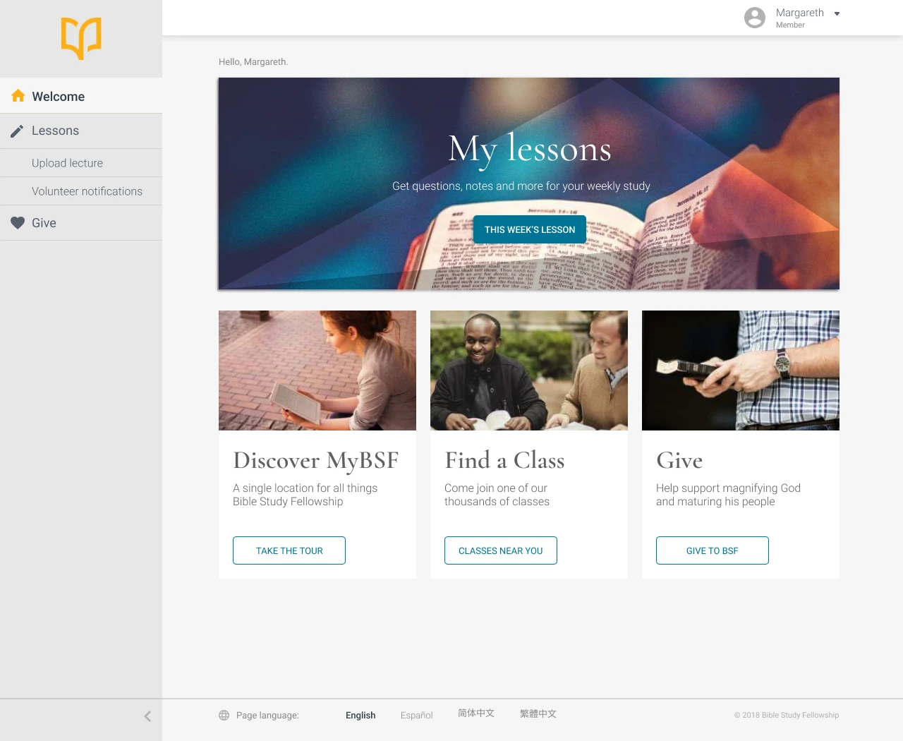 - Co-designed the V1.0 of myBSF, the centralized portal of the Bible Study Fellowship, in a cooperation with teams across USA, Brazil, Australia, India, China and Pakistan (desktop & mobile)