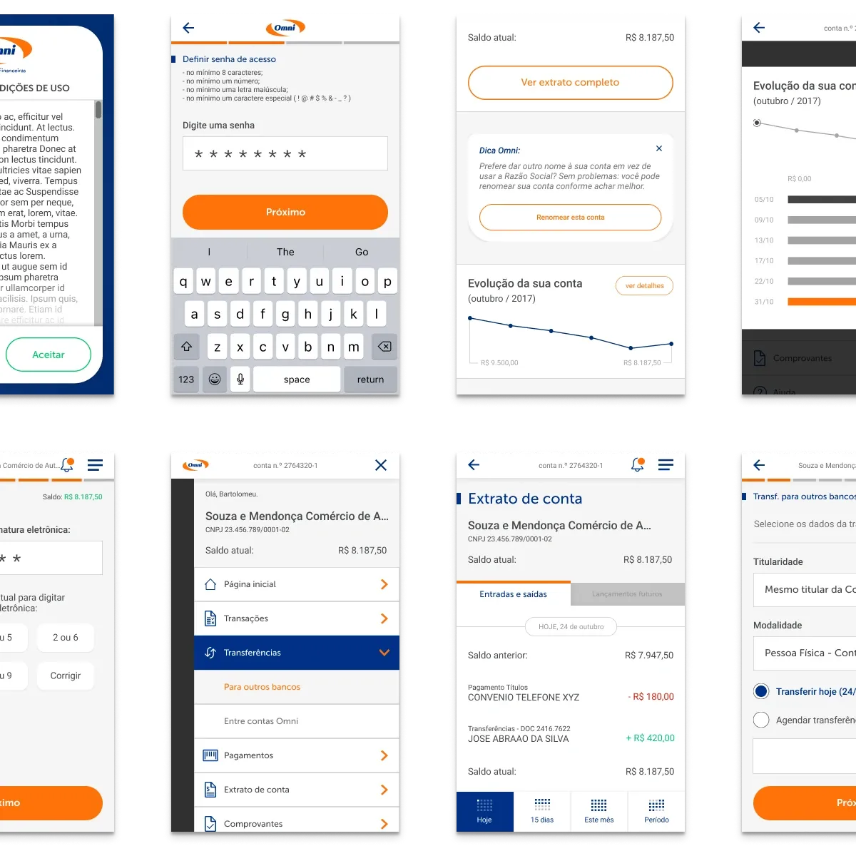 - Designed from 0 to 1 the complete experience of Omni Bank's mobile app, successfully released to the public back in 2019 (see case below)