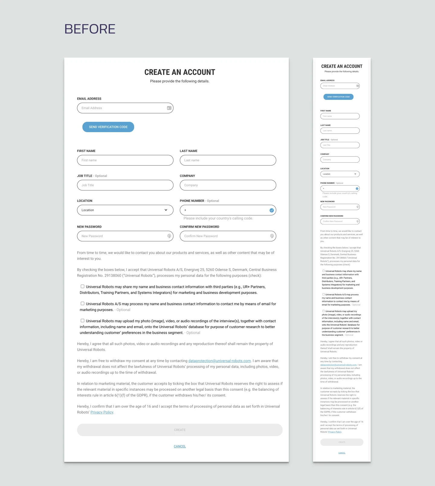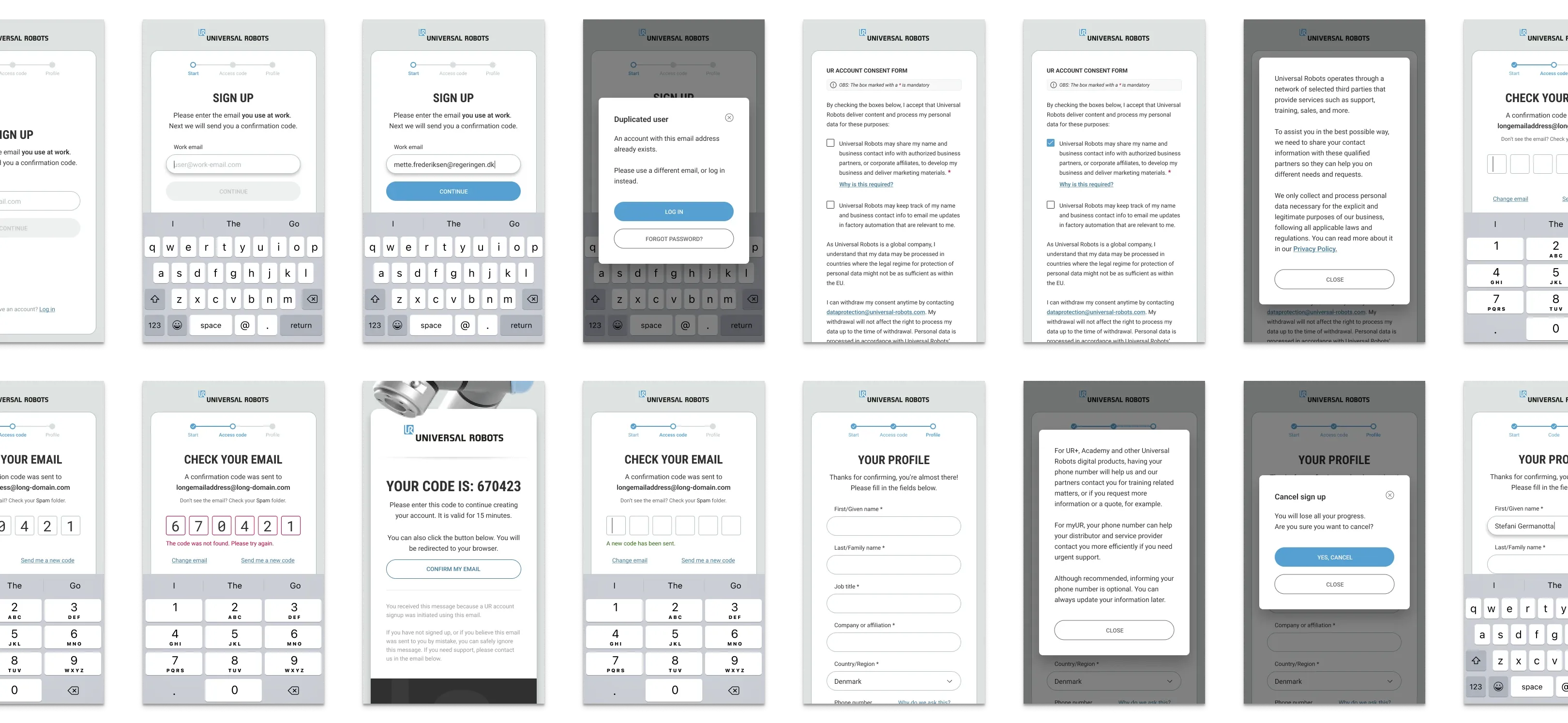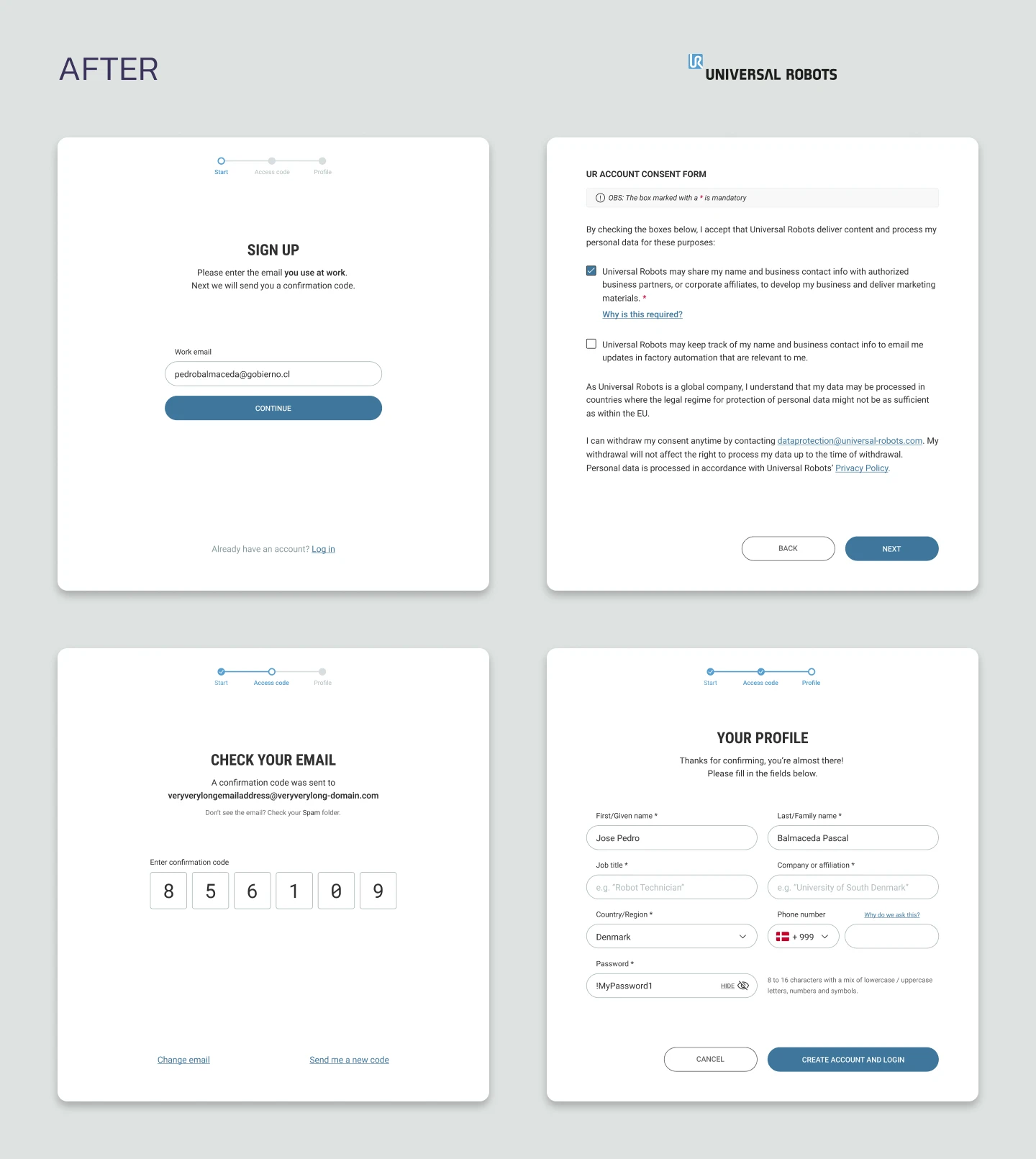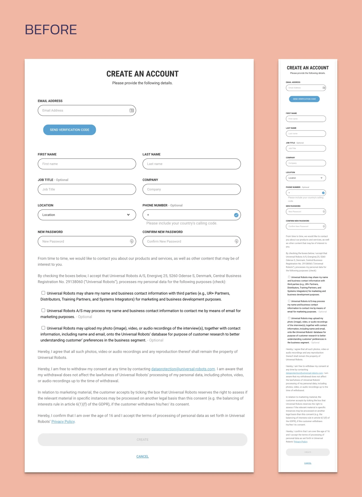 UR prides itself on having easy-to-use robots, but creating an account for online products was a real hassle for customers. Analytics showed that many users dropped off early due to a confusing process.